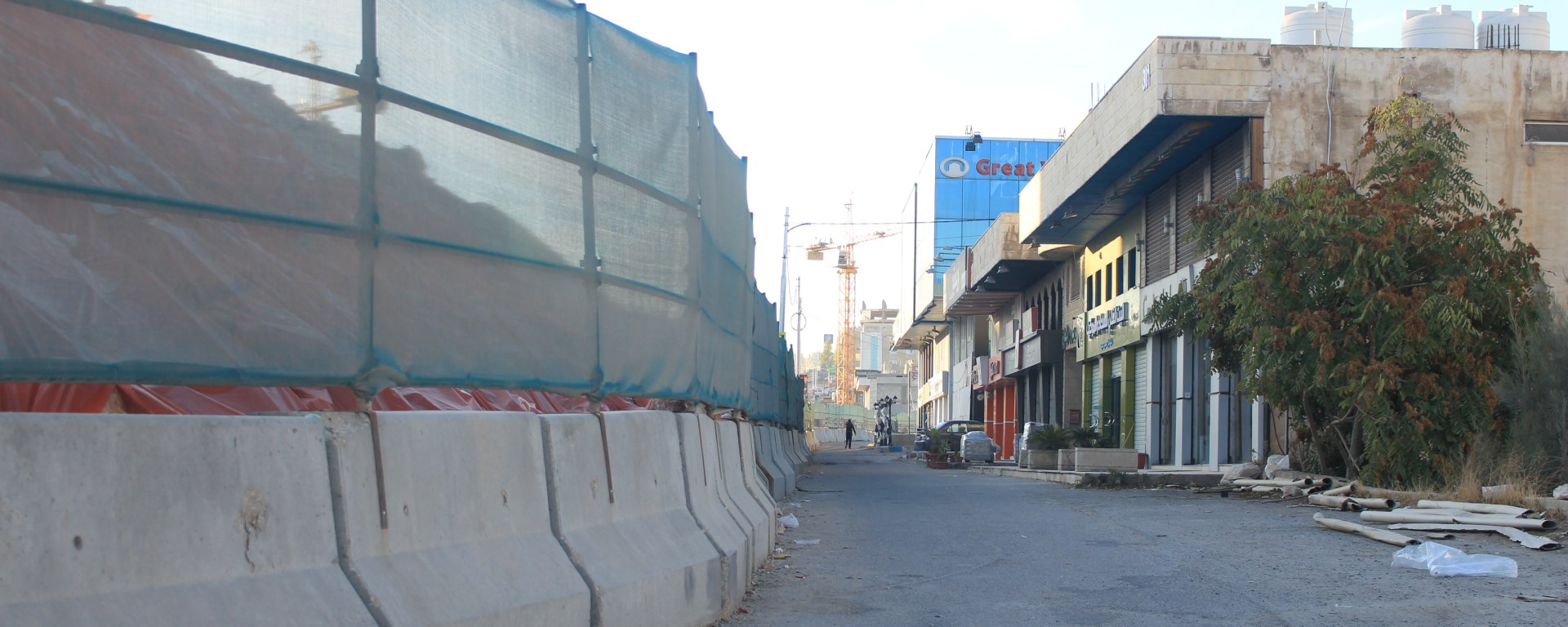 التقيته جالساً على كرسي أمام محله المغلق منذ ما يقارب الستة أشهر، الحزن في عينيه وهو ينظر إلى أكوام الرمل “الطمم” أمامه والتي يصل طولها إلى عشرة أمتار.