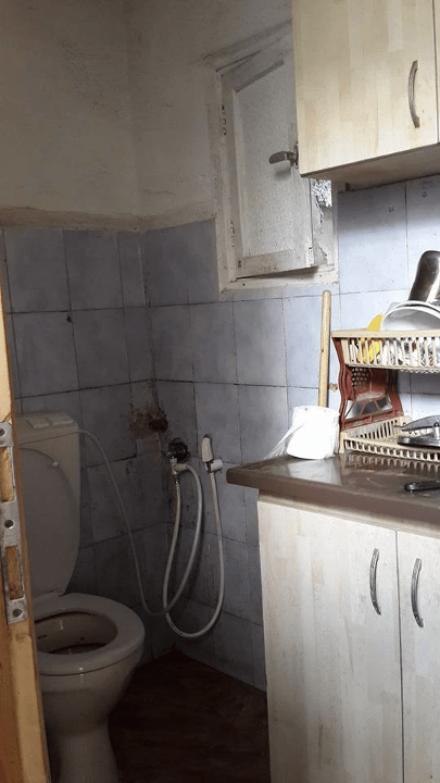 – عندي حل، راح نعمل سدة، ونغيّر محل الحمام حتى نفصله عن المطبخ، ونصلح السقف، وناخد شوي من المدخل. شو رأيك؟